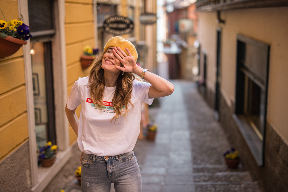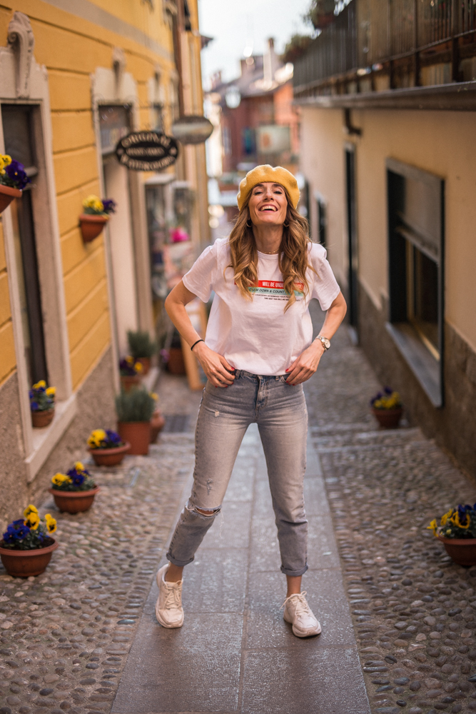 Mismo día en Bellagio pero… como hizo taaaaan buen tiempo el abrigo y las prendas de invierno sobraban constantemente. así que allí estaba yo, tan ricamente, con mi camiseta nueva de Zara. No os cuento las camisetas blancas de manga corta que tengo porque directamente me matáis. No me canso de ellas y como desgraciadamente con la lavadora se estropean pronto…