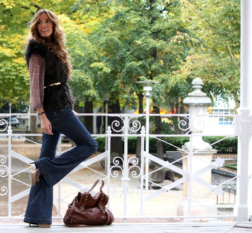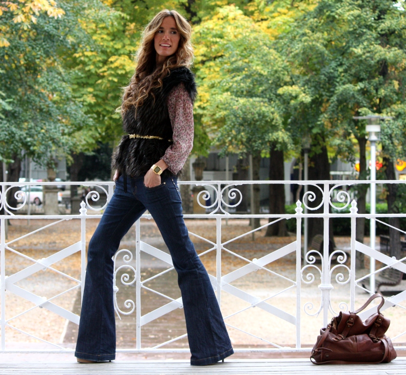 Como veis, hoy he apostado por un look boho chic, con mis viejos vaqueros de pata de elefante.  Sé que han tenido tiempos de mayor notoriedad, y que los odiamos y adoramos en la misma medida, pero a mí siempre me ha fascinado el toque hippie que aportan.