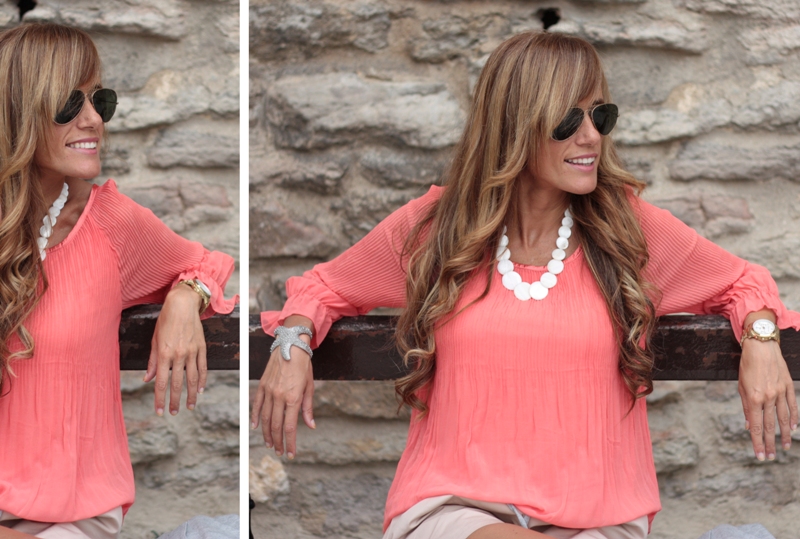 Sí, sí, lo sé, el coral comenzó a llevarse a comienzos de la temporada primavera-verano, y yo cojo y lo estreno como color meses después.   Como mi estrella brazalete. Llevo todo el verano viéndo la estrella de Blanco o Bimba&Lola en dorado y yo la estreno ahora.  Anda que… soy una trendsetter… estoy como para que me contraten de cazatendencias, jaja.  Pero oye, oficialmente, el verano dura hasta el 21 de septiembre.  Así que todavía vale 🙂