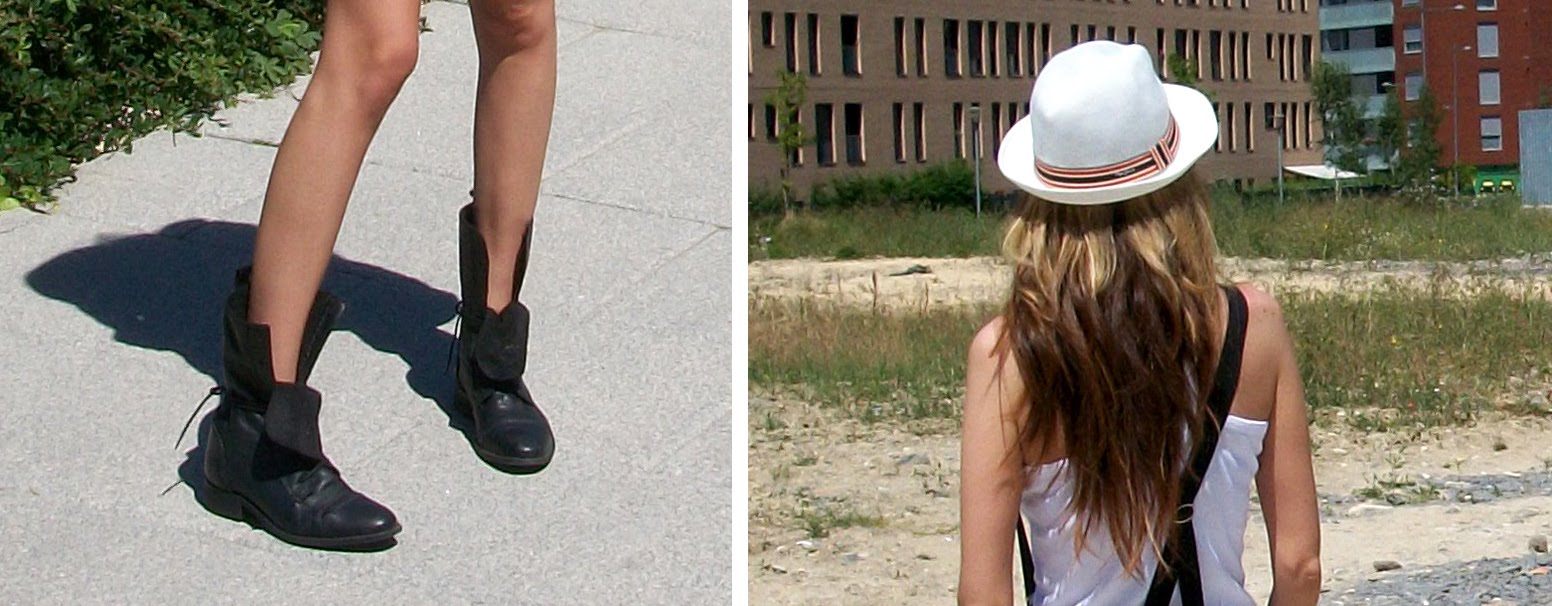 As you see, for saturday, shoes, blazer, earrings clutch and shirt.  And for the next morning, militar boots, shoulder straps, and a hat wich hide my disastrous hair.