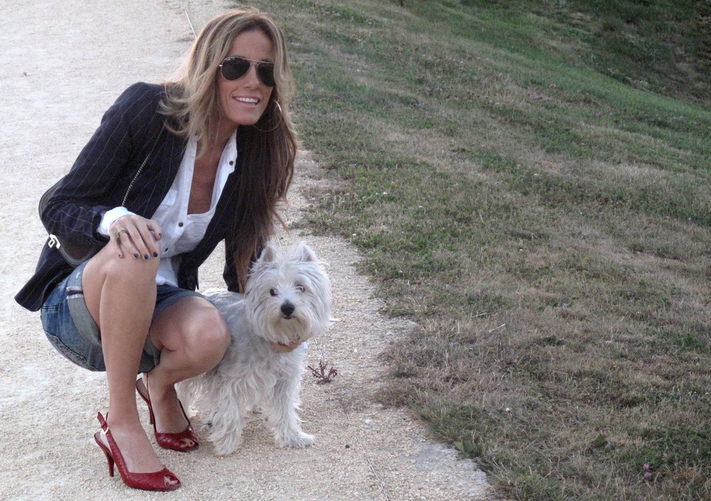 Me encanta la camisa, es preciosa, la chaqueta la tenemos igual, y las gafas de sol también,ja,aj,aja me encantan, y lo mejor Prada, lo siento, pero la adoro,ja,aj,aa, qué graciosa. El blog tendrás que compartirlo con Prada que ya es todo una estrella. Y el look de día está genial, fresco y cómodo. Espero que estés disfrutando de las vacaciones.
