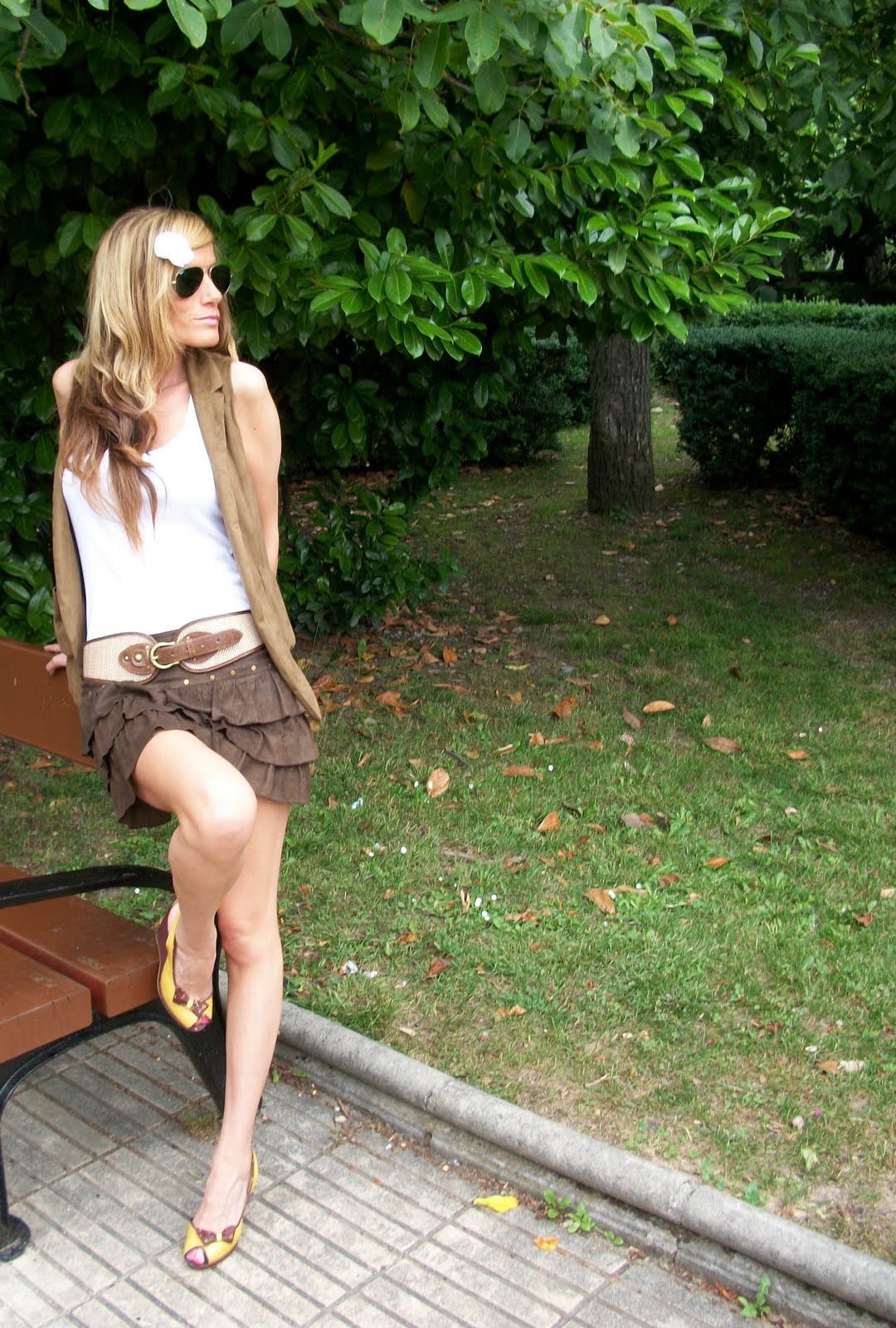 This year has been the year of miniskirts and flounces.  And, in a cloudy day, I have chosen dark shades pocahontas style.  And I´ve got curly hair thanks of my ghd.  I finish my look with wedges, although… I would have liked do it with gladiator sandals, but I can´t find them!! Do you like them? Do you help me to find them?  Kisses and happy weekend…