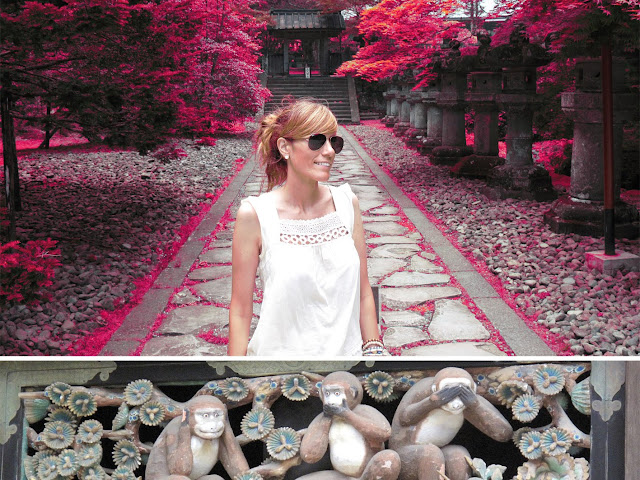 Y para terminar… el mausoleo de Toshogu en Nikko, con sus tres guardianes, los famosos tres monos Kikazaru (no oye), Iwazaru (no habla) y Mizaru (no ve). Cuenta la leyenda que eran los mensajeros, cda uno con dos virtudes y un defecto, enviados por los dioses para delatar las malas acciones de los humanos con un conjuro mágico.