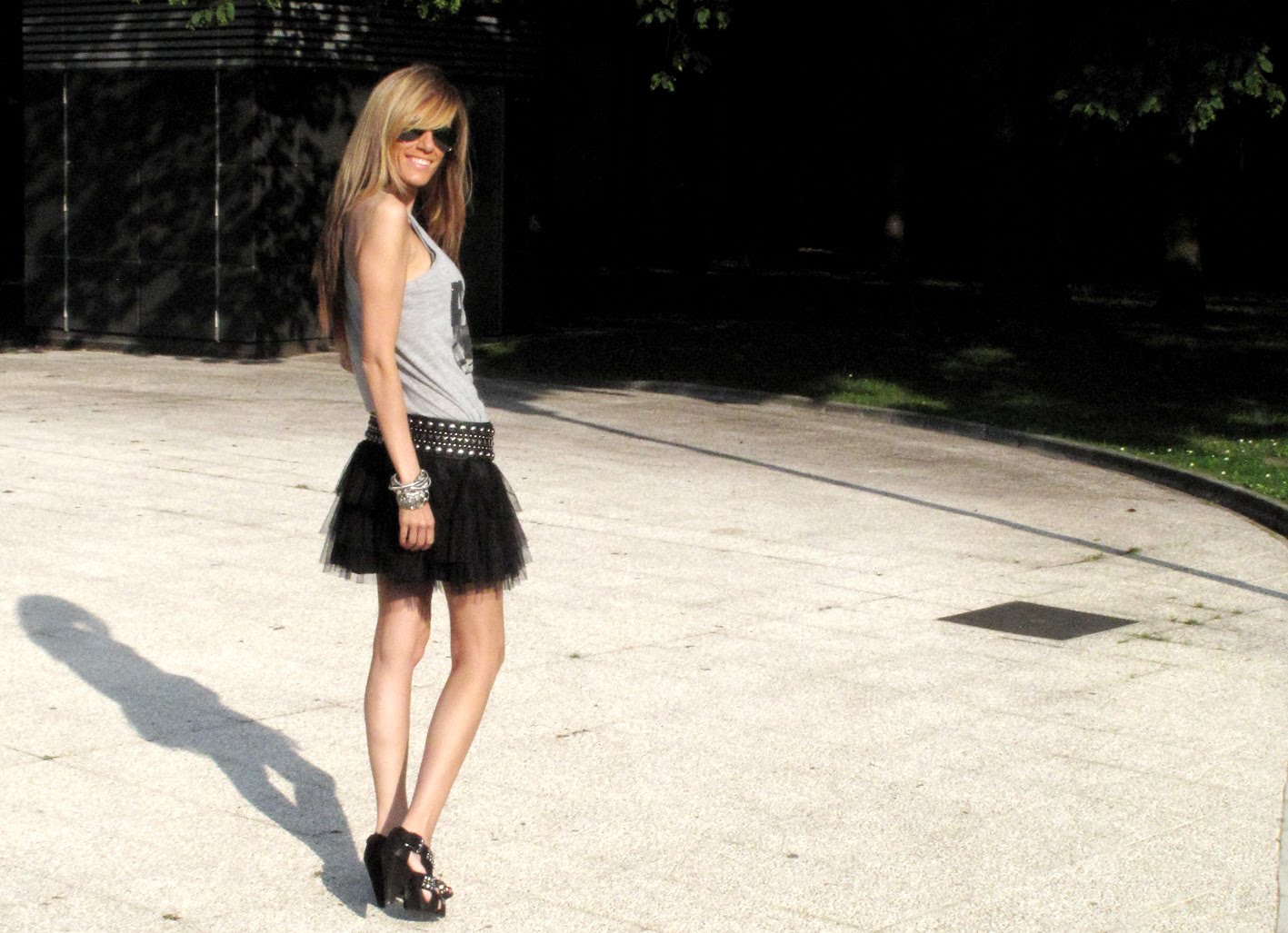 Me encanta este estilismo de aire Roquero-Glam con la falda de tul!!!
