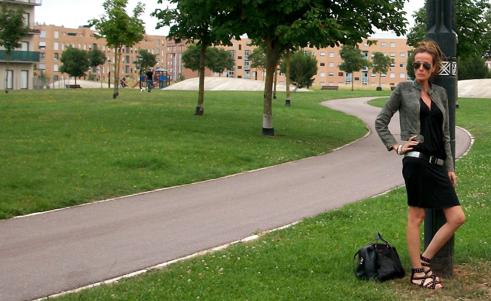 As you see, I repeat again with a motorbike jacket.  I have an important problem with this kind of clothes.  It´s my last bought of sales, the last, promise!! ;-). As you see, they aren´t very good photos.  Don´t you feel that there are days where make what you make, you can´t make them to go better???? Ok… those days, dark clothes, comfortable, your hair in a ribbon and tomorrow will be another day.  And of course, those silly days, I show you as well 😉