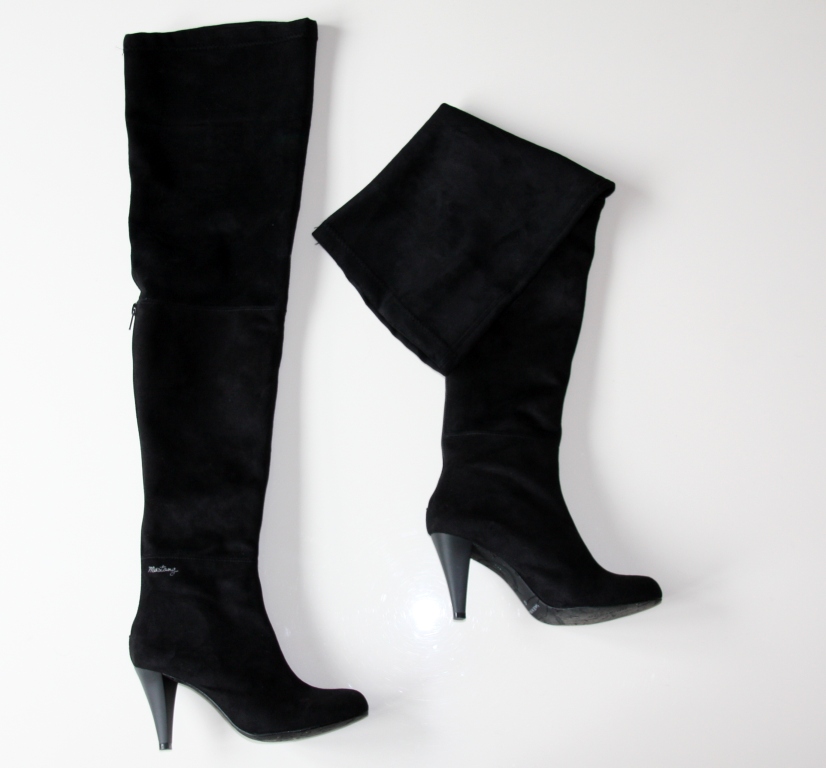 ¿Vuestra última compra compulsiva o desastrosa? ¿¿¿También os pasa, no??? Estas botas. Mira que me las probé pero mis ganas de tener una botas overknee, ¡¡me ofuscaron!! Como veis,el ancho de la caña me queda enorme. Luego pensé en estrechar la caña en mi zapatero de toda la vida pero es que sin plataforma y con un tacón no muy alto, ¡también me veía rara! Así que… aquí tenéis mi gran error de la semana pasada 🙁