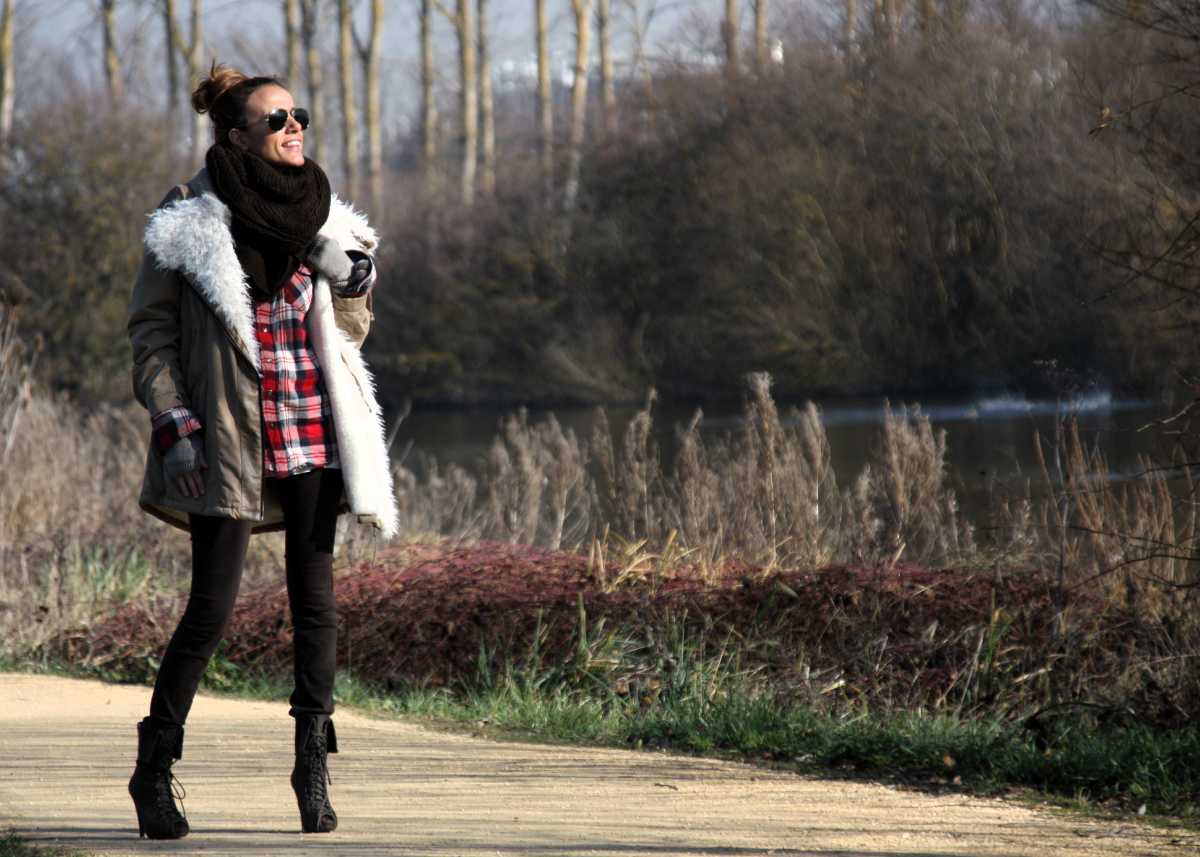 con el pelo recojido y sigues una maravilla de chica…muy chulo el look ..y frio no as debido de pasar???parece q abriga….