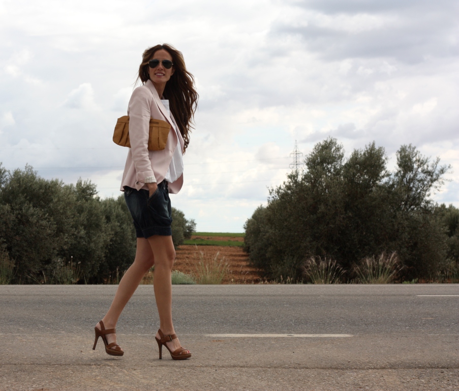 Today I wear a simple look but that time I needed something classic and discrete.  For those times, in my point of view, my must have it´s a blazer. And if you want you add your look your magic touch,  in my case I wore a baggy shorts and my new clutch from ASOS. Ah! And my nails glitter gold colour from KIKO.   Maybe you can´t see it well enough because isn´t very showy, but it looks amazing.  By the way, the trees you can  see behind me are olive-trees.  They remind me my chilhood so much!   And I always like to know your opinion, ¿which item in your wardrobe is the best one for a discrete date or meeting day?