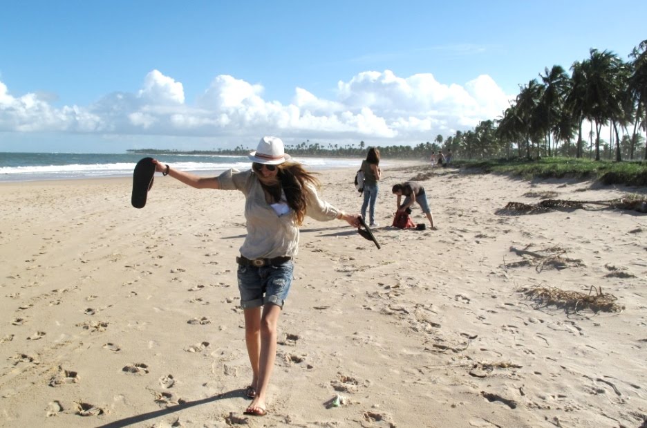 Mi último post sobre Brasil, ¿os he aburrido mucho? Conocimos a tres españolas simpatiquísimas y fuimos juntos a Praia do Forte, un pueblo con una reserva natural de tortugas y otras especies.  La playa, además, muy poco explotada, un paraíso en el que perderse, disfrutar, jugar… como nosotras, que aprovechamos la soledad para intentar bailar capoeira sin éxito 🙂