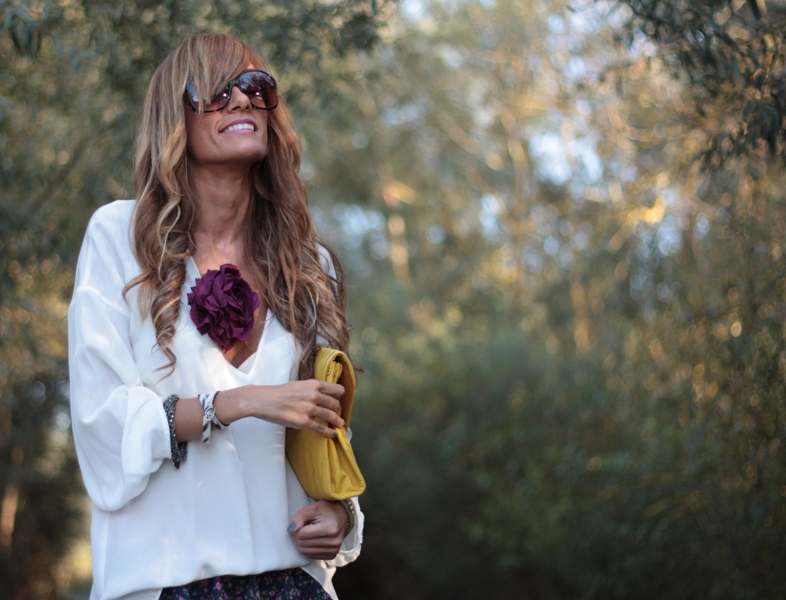I introduce you the boring girl of the flowers.  Me.  My dresser is full of them, haha.  But I promise you by now is the last one (or I think that!).  I adore the mix purple+yellow. And I also love this wide and comfy shirt.  I´m using it a lot this following season, with both skirts and skinny. As I´ve told you many times, I always buy big size shirts, in order to wear them wiiiiiiiiiiiiiiiide. By the other hand, I´m looking for a new clutch for my wardrobe, so if you know on line shops where I can find that wonderful clutch wich is waiting for me… report me, please!!