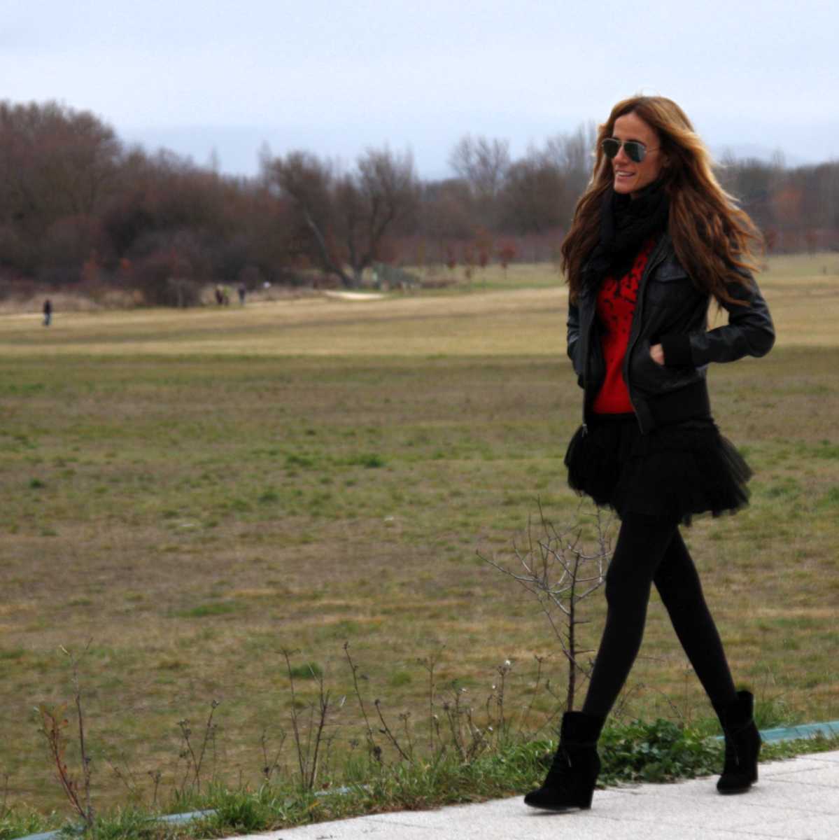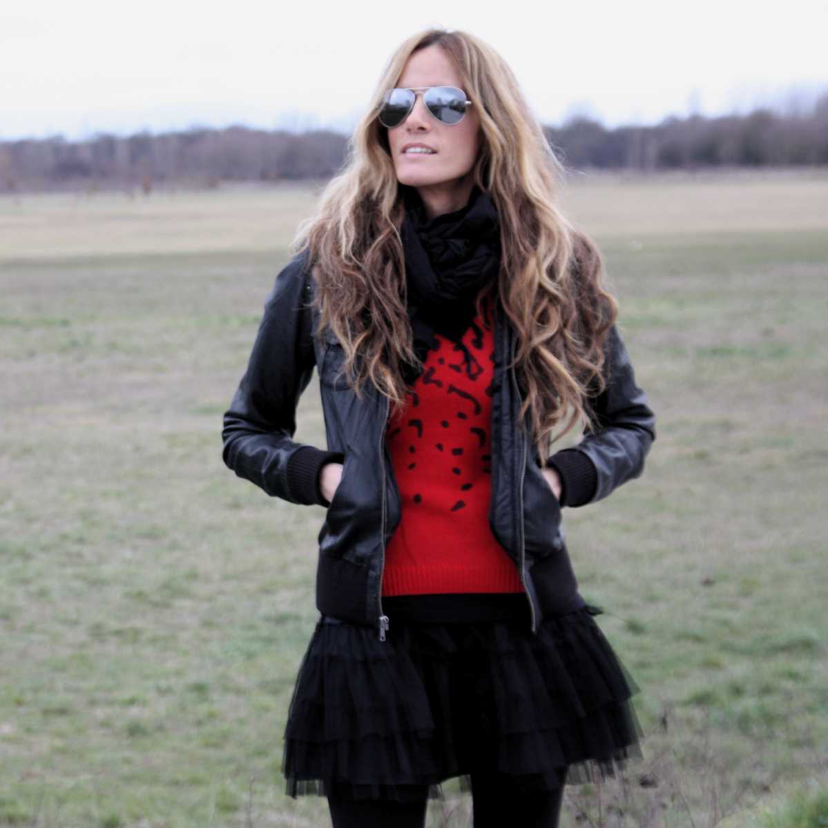 Red animal print2 enero, 2011Falda – skirt – Blanco (ss 10) / Jersey&Cuñas – sweater&wedges – Zara / Cazadora – jacket – Bershka