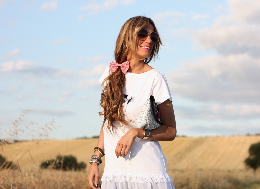 When you read this post, I will already be in greek islands 🙂   In this post I want to highlight a romantic style, thanks to this Nitanfita t-shirt, the ribbon on my hair and the flats of Miss Selfridge. As you can see, this summer I´m carrying out my promise of wearing flats.  After coming from my holidays… I will recover my heels!  Ah! Lately you ask me a lot about my hair.  I´ve just cut my hair tips and I´ve bought a new product to get a silky mane: Uniq One. I´ll test it this summer and tell you how it works.