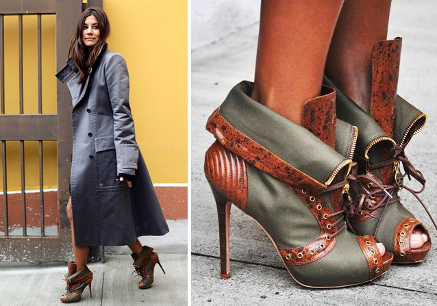 ¿Recordáis estos zapatos de Christine Centenera? Me encantan, así que cuando vi estos botines en Sfera fui a por ellos. ¡Al menos se parecen en el color, ja, ja! Al verde militar sumé los colores de este otoño, marrón y camel.