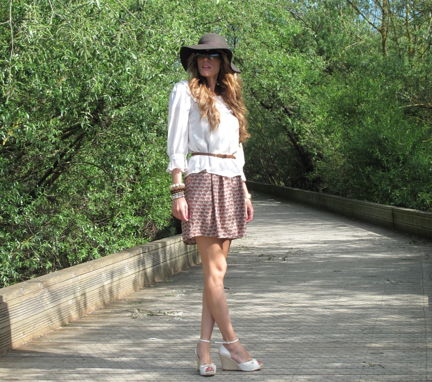 Vestido&cuñas – dress&wedges – Zara (old) / Camisa – t-shirt – Queens Wardrobe / Sombrero – hat – Blanco / Gafas – shades – Chanel