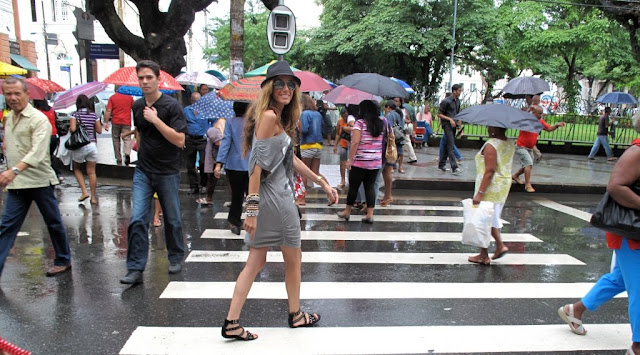 Y como veis, yo siempre con mi borsalino para domar un pelo muy leonado debido a la humedad.  Por cierto, en Brasil es invierno y… entre veinte y treinta grados, increíble, ¿verdad? Eso sí, llovía con bastante frecuencia y a las cinco o seis de la tarde… ¡de noche!