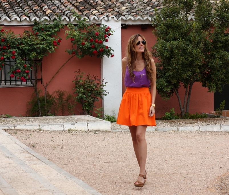 yo también adoro Madrid! me gusta mucho la combinación de morado y naranja! xcierto la falda es genial, es súper chulo el color de ese naranja!! besos