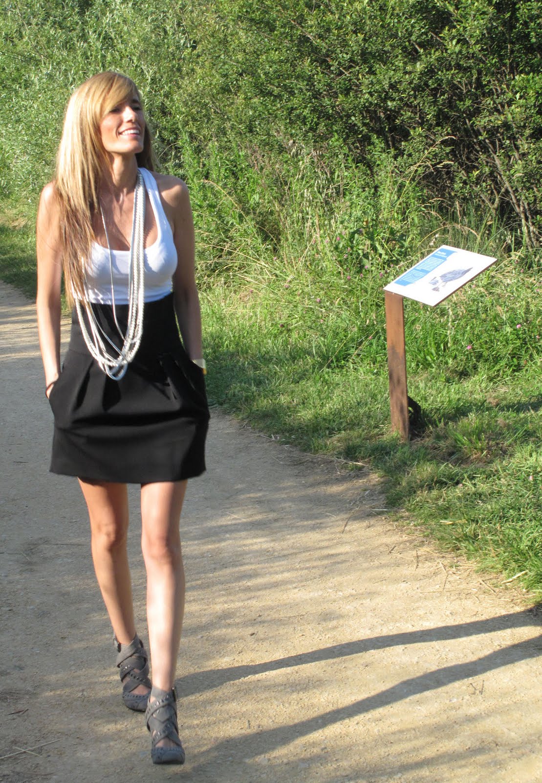 Do you have to wear a serious look at your work? An important meeting? And besides after work you have a date and you can´t to take another clothes? I present to you a look with a basic base about working world but with changes made in rebel: dark globe skirt, a white shirt with an original touch that it runs away from the typical classic shirt, and fantastic heels.  And after working… you instead of shirt, you wear a fitted t-shirt with showy necklaces, and instead of your shopping bag, you wear a clutch and… voilá.  I hope you love it!