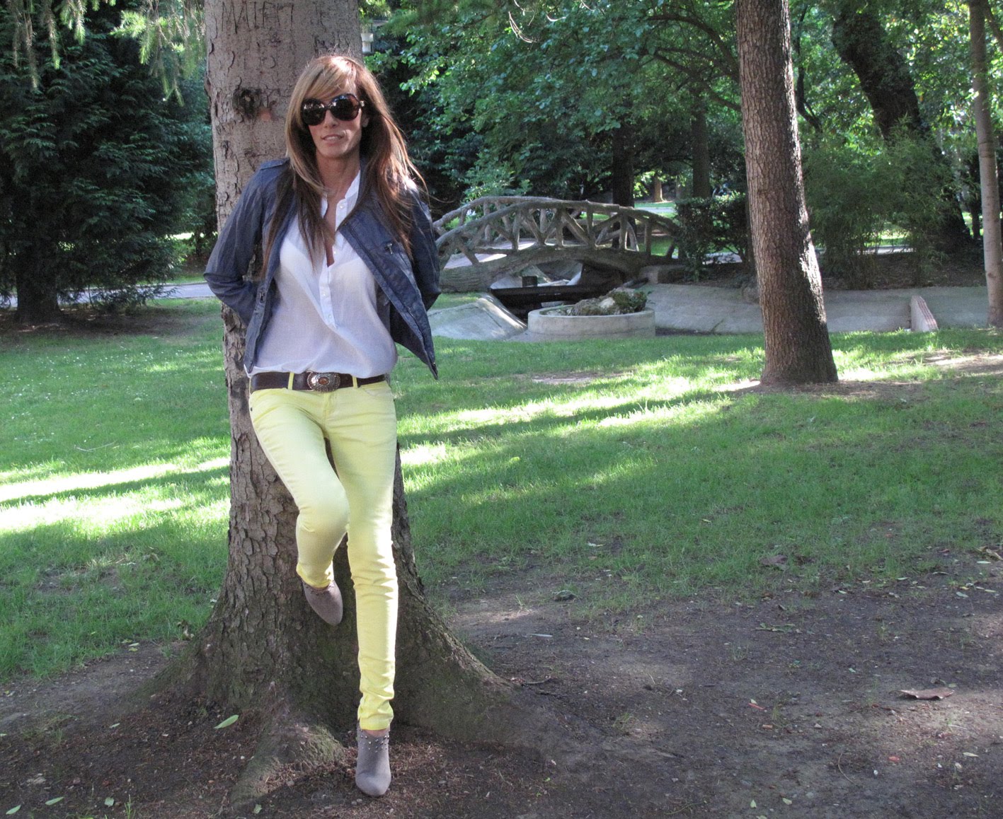 In other post I showed you similar denim with blazer to give that look some elegance. But if you prefer more informal look, you can mix your denim with a leather jacket. And it´s summer, so, why don´t you dare to mix impossible colours? Yellow fluorescent + blue. I recognize I wasn´t sure but I thought the shirt could soft the final effect. Would you Cheer up?
